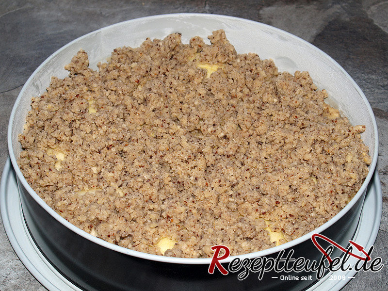 Der Apfel-Nusskuchen mit Streusel verbindet einen Obstkuchen mit einem Nusskuchen.