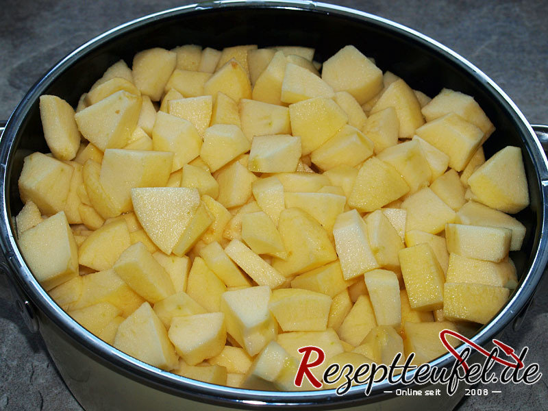 - Die geschälten und geschnittenen Äpfel in einen Topf geben