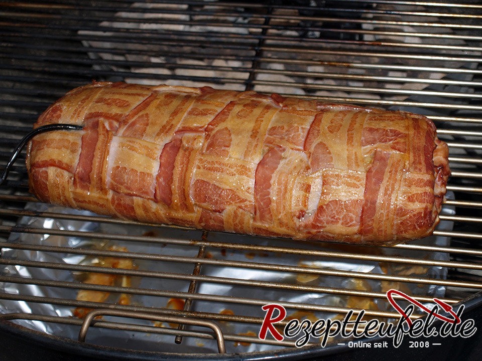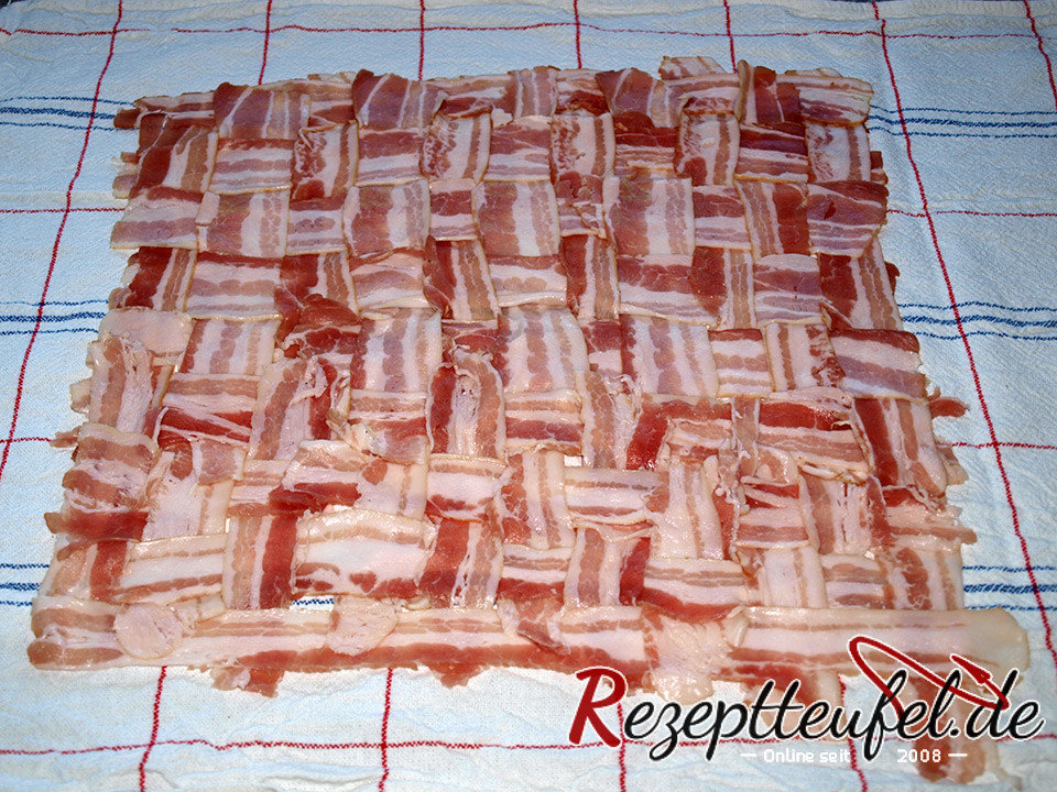 Ein Baconnetz herzustellen ist absolut simpel wenn man weiß wie es geht. Eine bebilderte Schritt-für-Schritt-Anleitung dazu haben wir innerhalb des Rezeptteufels veröffentlicht unter: Baconnetz weben / flechten (Schritt für Schritt)