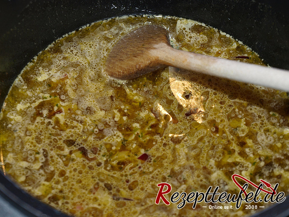 - Instantbrühe , Wasser und den Zucker mit in den Topf geben und den Inhalt aufkochen und etwas abkühlen lassen.