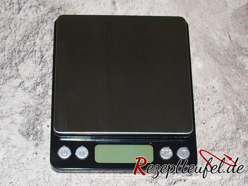 Wir brauchen eine Waage mit einer Zuwiegefunktion, also eine Waage, die immer wieder auf 0 gestellt werden kann, damit die nächste Zutat gleich mit dem richtigen Gewicht in das verwendete Gefäß gegeben werden kann. Dafür besitzen wir 2 verschiedene Waagen, die eine Waage kann keine kleinen Gewichte messen, obwohl es so in der Beschreibung steht. Also haben wir uns eine Feinwaage besorgt (für das Wiegen von Gewürzen), diese ist allerdings so klein, dass man die jeweilige Zutat abwiegt, in ein Schälchen gibt und dann die nächste Zutat abwiegt und so weiter …[/vc_column_text][vc_tta_accordion active_section=”” collapsible_all=”true”][vc_tta_section title=”Beschreibung des Herstellers” tab_id=”1469693901080-368c497c-11eb”][vc_column_text]