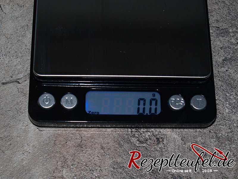 Die Zutaten für unser Bratkartoffelgewürz wurden nun mit dieser Waage abgewogen. Es ging wirklich einfach und problemlos.