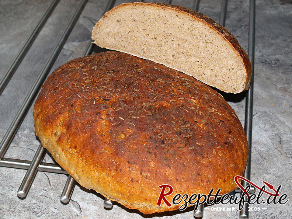 Im Gegensatz zum Rezept für die saftigen Kartoffelbrote ist die Zugabe von gekochten Kartoffeln in diesem Rezept relativ gering. Doch auch dieses Kartoffelbrot bleibt saftig und der Kümmel in Kombination mit den Gewürzen sorgt für einen besonders herzhaften Geschmack.