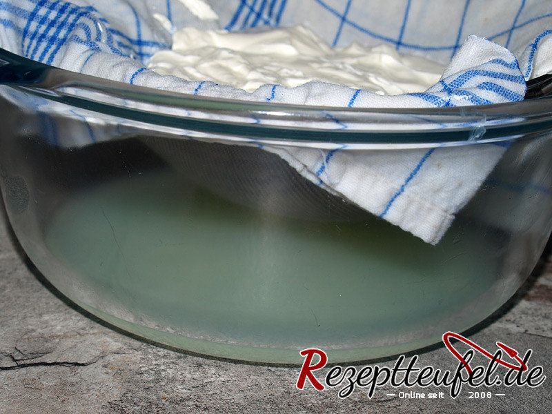 - Wird ein Geschirrtuch zum Abtropfen verwendet, so sollte es natürlich fusselfrei und ohne Waschmittelrückstände sein, da der Frischkäse sonst nach Parfümstoffen schmeckt.