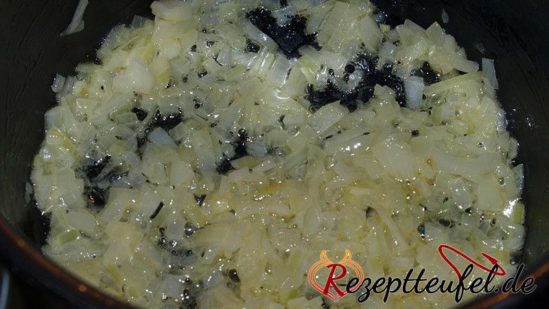 - Die Schalotten schälen, in feine Würfel schneiden und in der Butter anschwitzen, bis sie glasig sind.75 g Schalotten, 25 g Butter