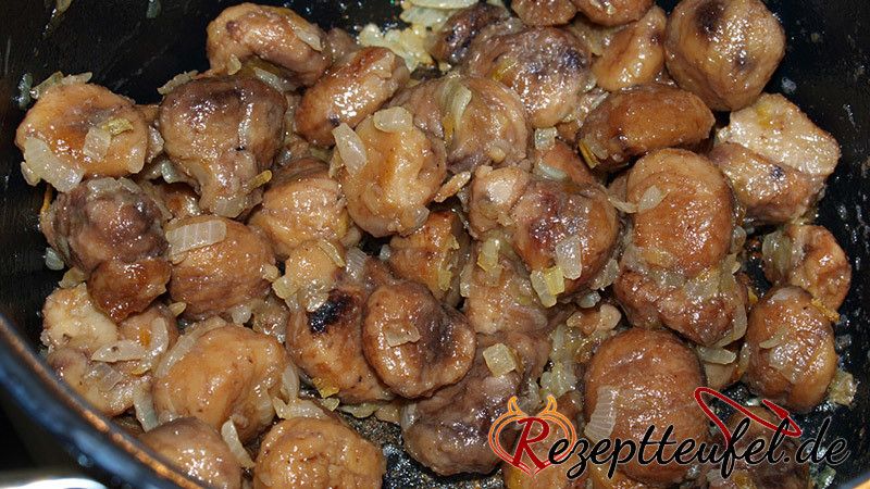 - Maronen zu den Zwiebeln geben