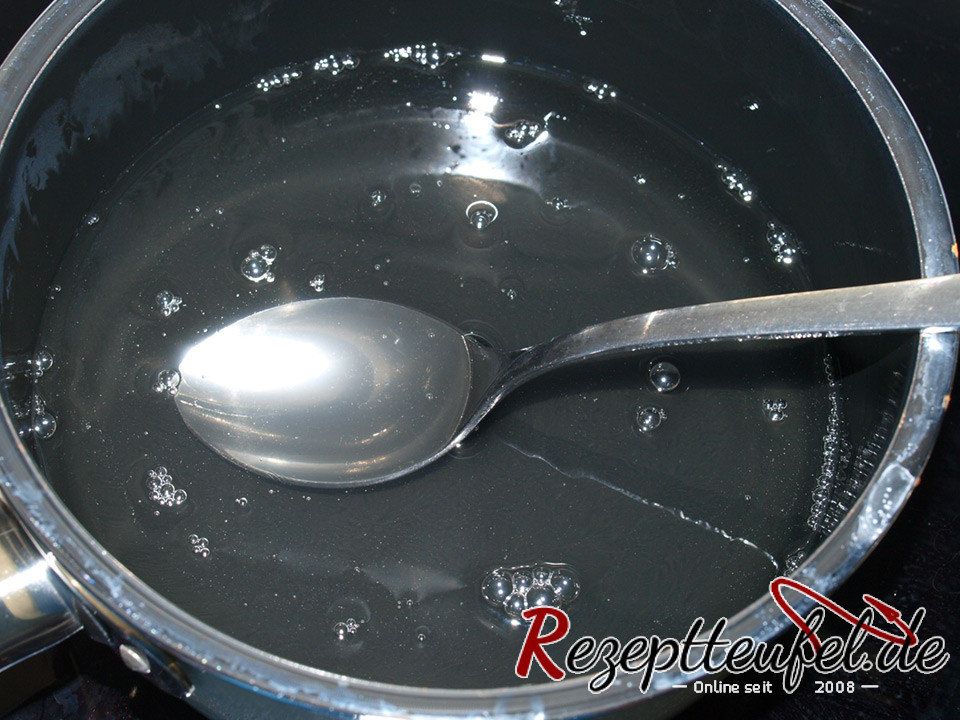 - Zucker und Wasser sind zu einem klaren Sirup gekocht