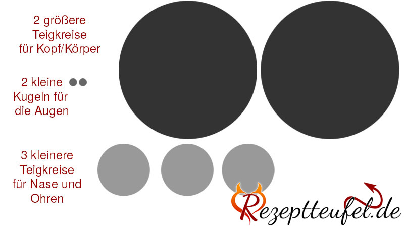 - Zusammengesetzte Teigkreise zuzüglich den Augen