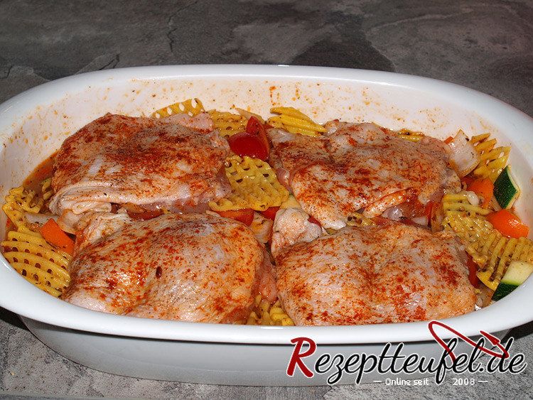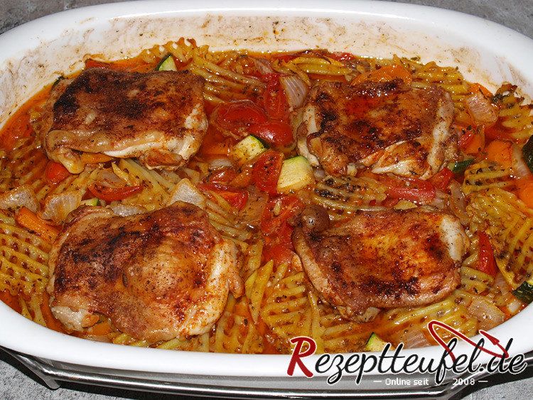 - Pollo Fino auf buntem Ofengemüse frisch aus dem Ofen