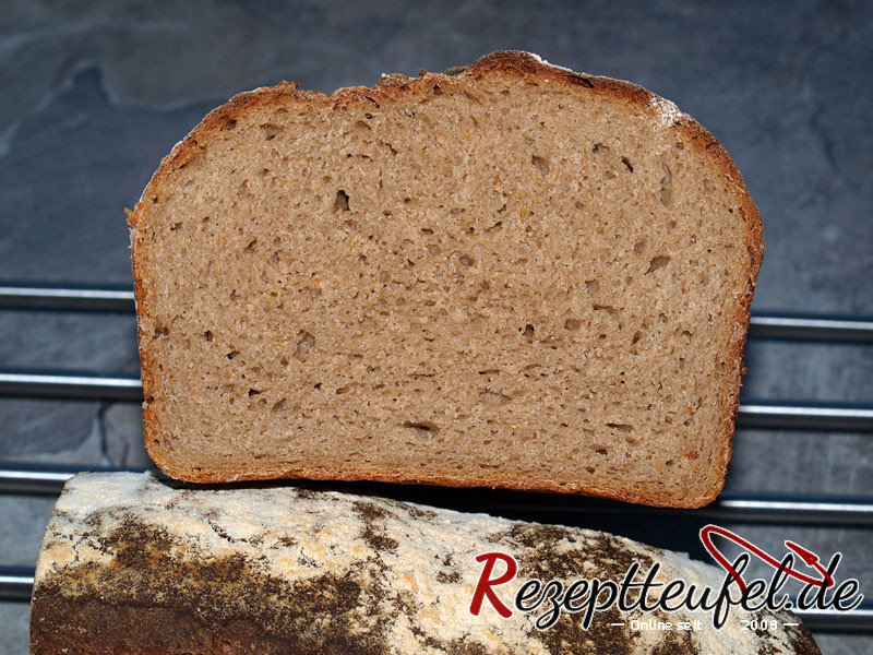 Das Brot beinhaltet Roggenmehl Type 1150 und Weizenmehl Type 1050 und als Triebmitel kommt Roggensauerteig und ein kleiner Anteil Hefe zum Einsatz.