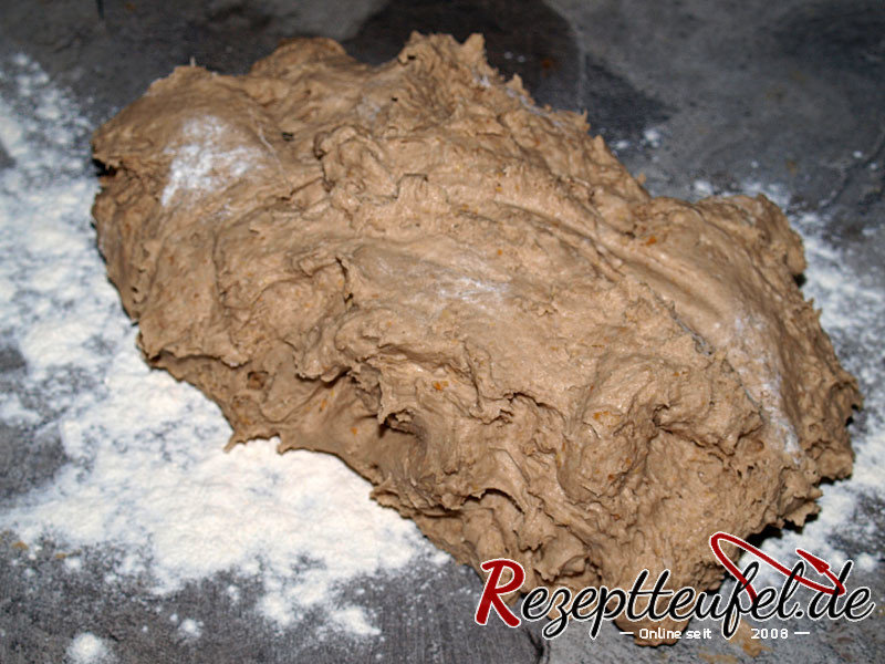 - Den Brotteig auf eine gut bemehlte Arbeitsfläche stürzen