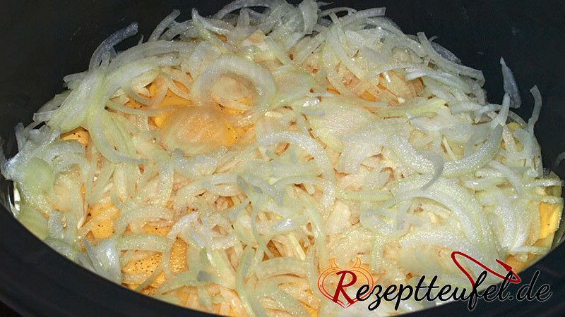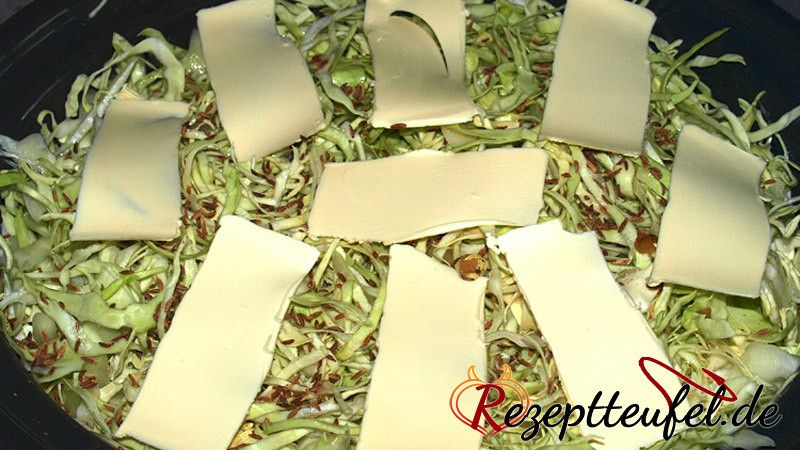 - Den Spitzkohl als unterste Schicht im Slow Cooker