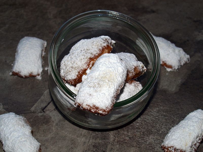 Stollenkonfekt ohne Hefe gebacken und im handlichen Format. Quarkteig mit Marzipan, Rosinen, Stollengewürz entwickelt einen herrlichen Geschmack ohne lange ziehen zu müssen.