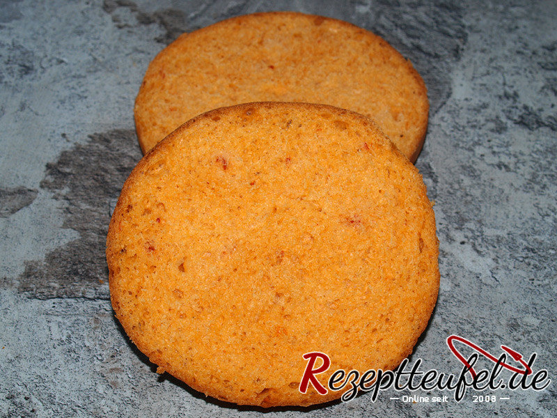 Sie sind lockerleicht und softig, mit einem geschmacklich dezenten Touch von Tomate versehen und alleine die Farbe ist eine Augenweide. Wer möchte, kann die Menge der in Öl eingelegten Tomaten noch etwas erhöhen, für unseren persönlichen Geschmack ist die Menge jedoch genau richtig.