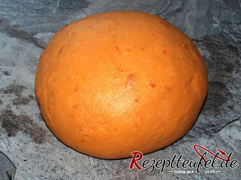 - Der Teig in einem knalligen Orangeton