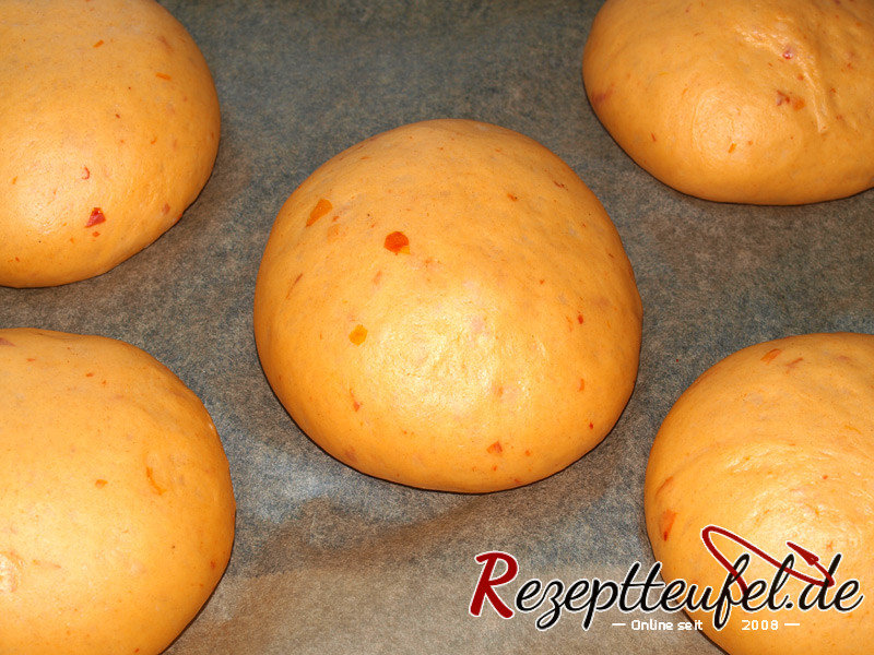 - Die Teiglinge locker mit einer Folie bedecken und ca. 60Minuten gehen lassen, bis sich das Volumen deutlich vergrößert hat.