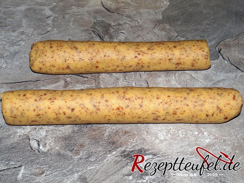 - Nach dem Kühldurchgang aus dem Teig Rollen formen