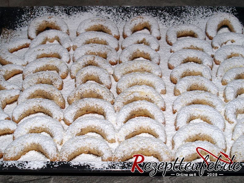 - Das Backblech auf mittlerem Einschub in den vorgeheizten Backofen schieben und die Vanillekipferl ca. 10 Minuten backen.