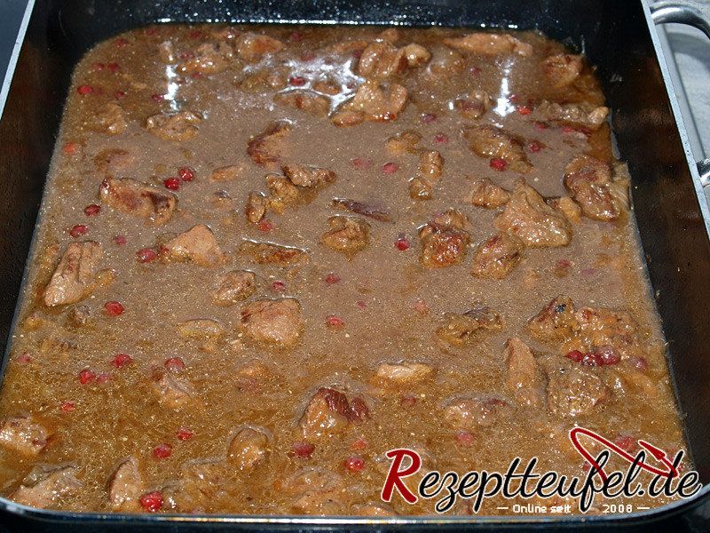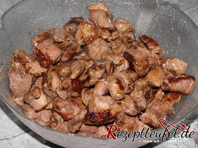 - Die angebratenen Fleischstücke