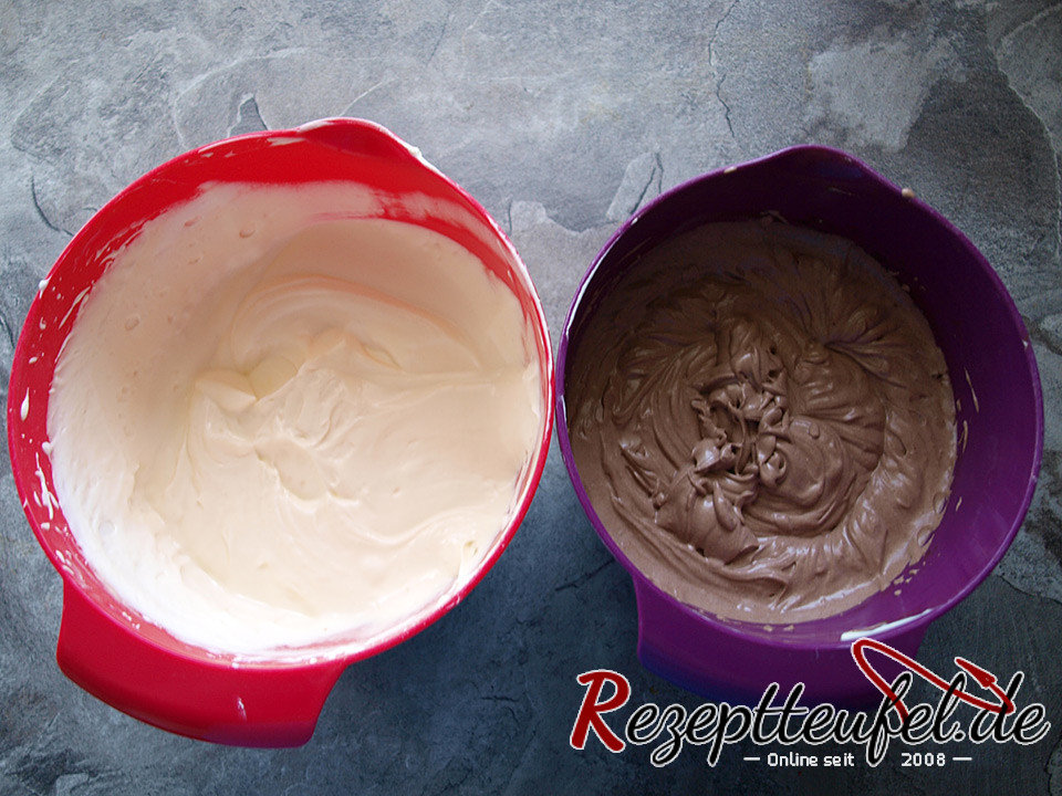 - Die Käsekuchenmassen abwechselnd in die Form geben