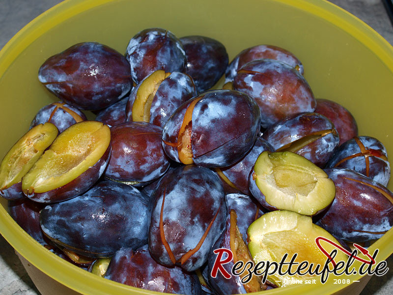 - Für eine rechteckige Springform 1,5 Kilo Zwetschen