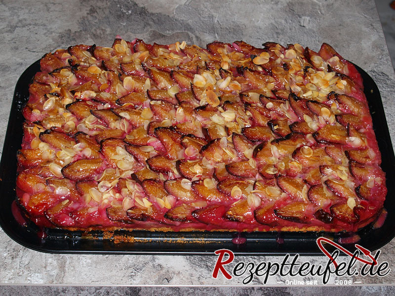 - Die Spitzen der Zwetschgen neigen während des Backvorgangs dazu schwarz zu werden. In dem Fall wird der Kuchen mit Alufolie abgedeckt.